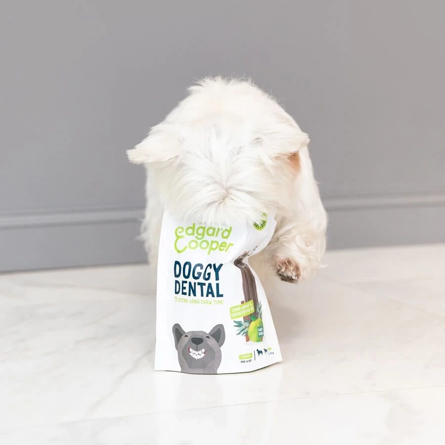 L’hygiène dentaire ne devrait pas être une corvée ! Edgard & Cooper choisit des saveurs que les chiens adorent, pour qu’ils se fassent plaisir tout en gardant une bouche saine.