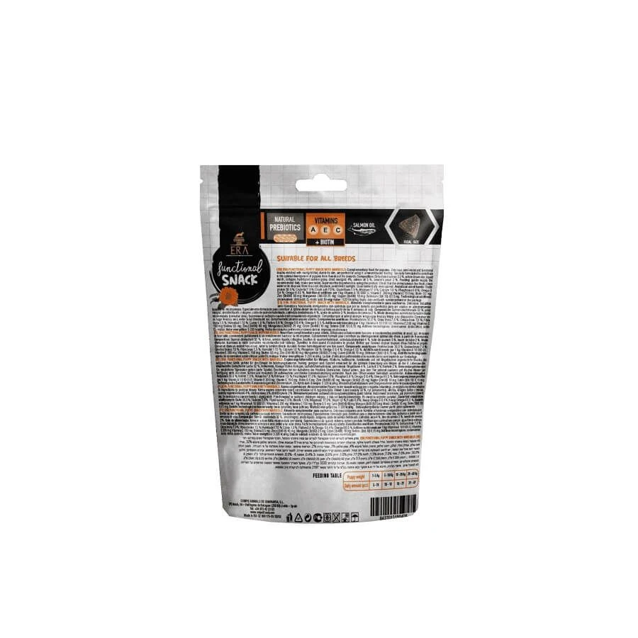 Enrichi en oméga 3 et 6 et en huile de saumon, ce snack contribue à une bonne croissance tout en rendant le pelage de votre compagnon brillant.
